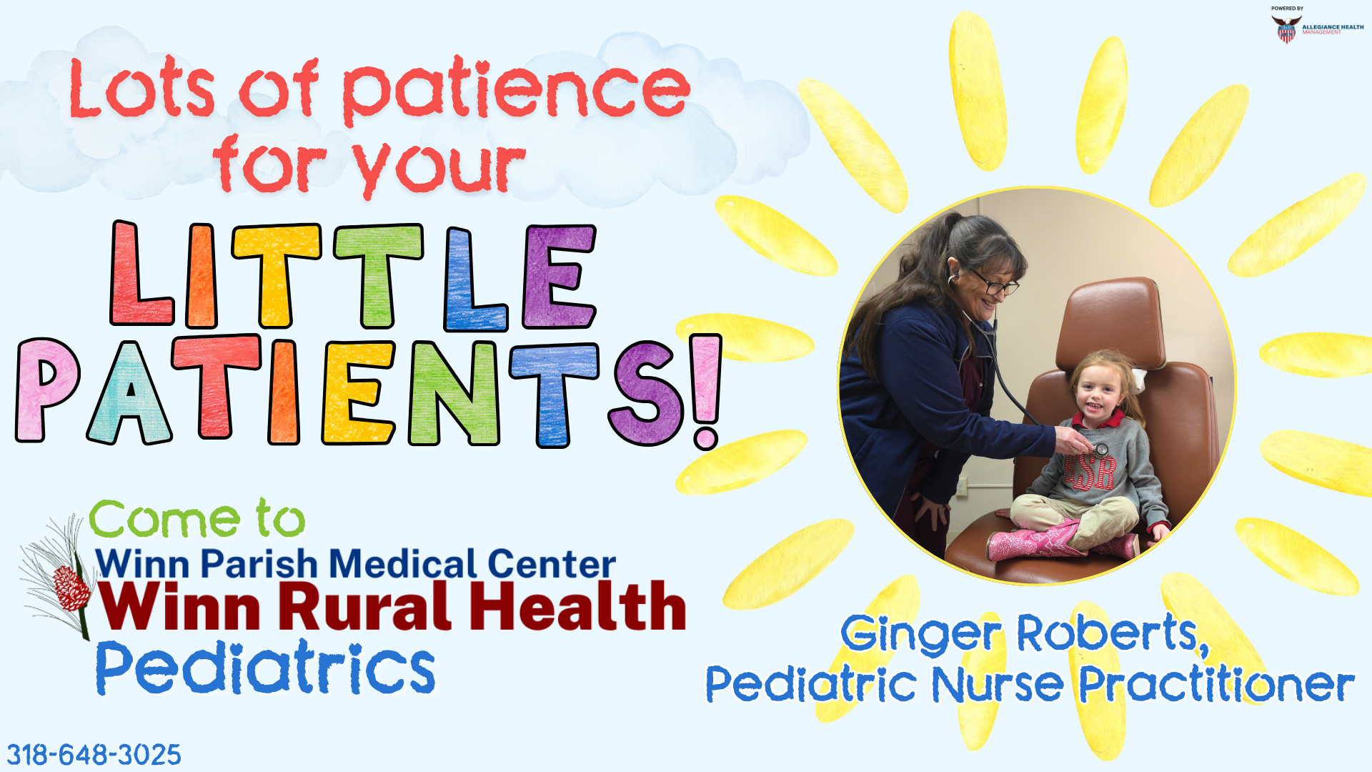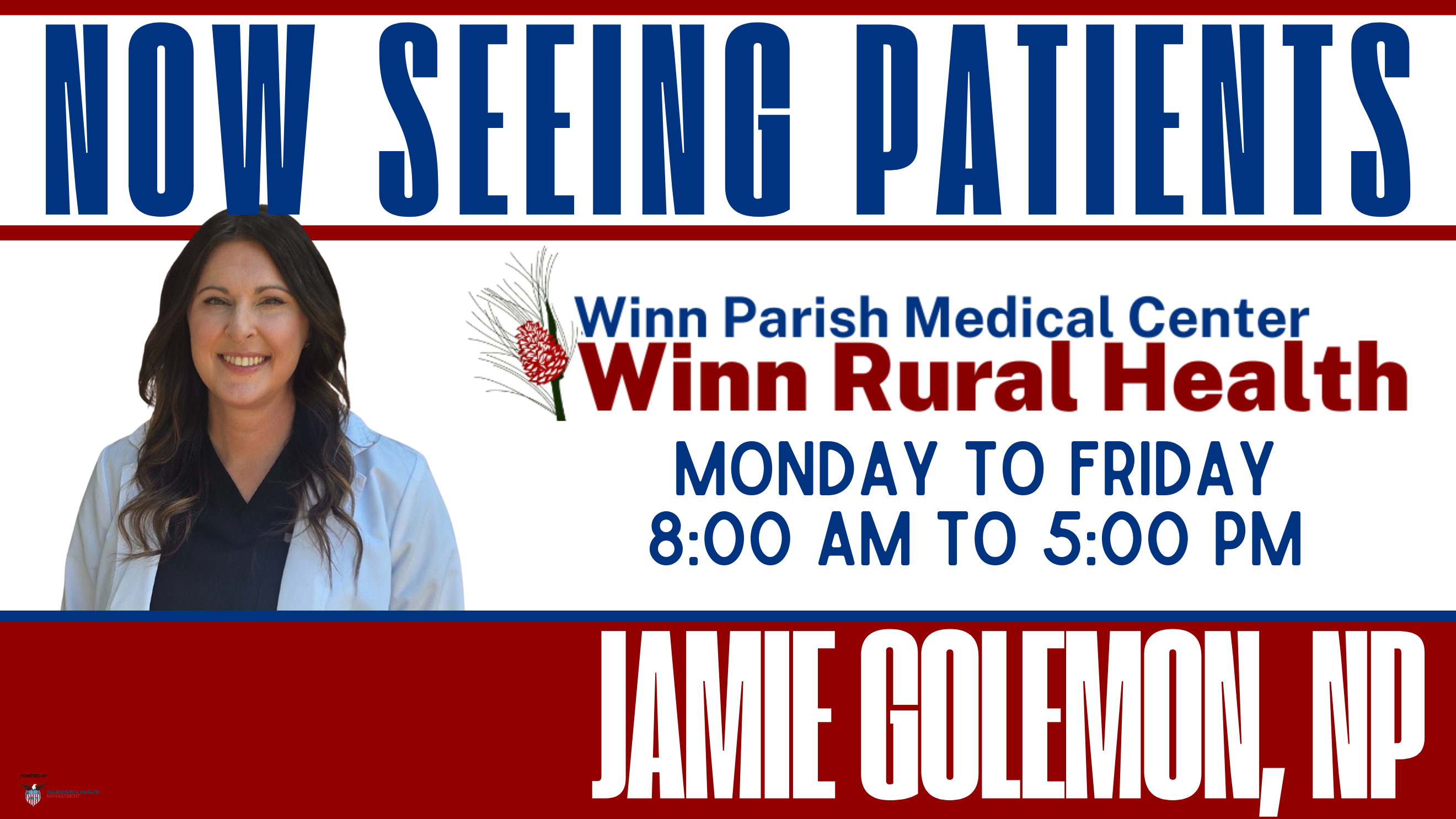 Winn Rural Health 639 W Lafayette StreetWinnfield, LA 71483Phone: 318-648-3025 Monday-Friday 8:00 AM to 5:00 PM Dr. Bethany Citerella Ginger Roberts, Pediatric Nurse PracticionerJamie Goleman, Nurse Practitioner